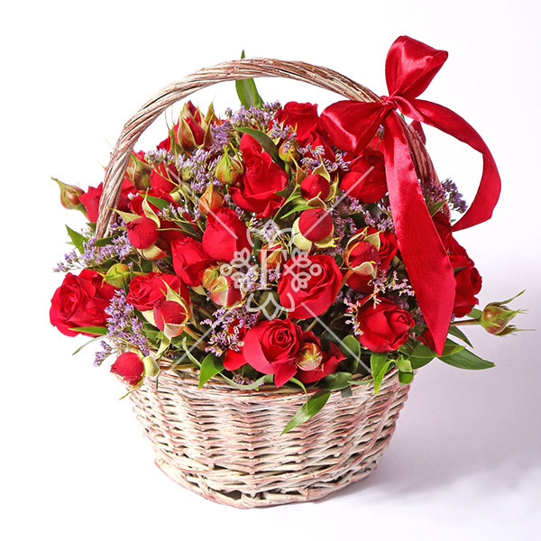 Объятия любви – корзина с красной кустовой розой